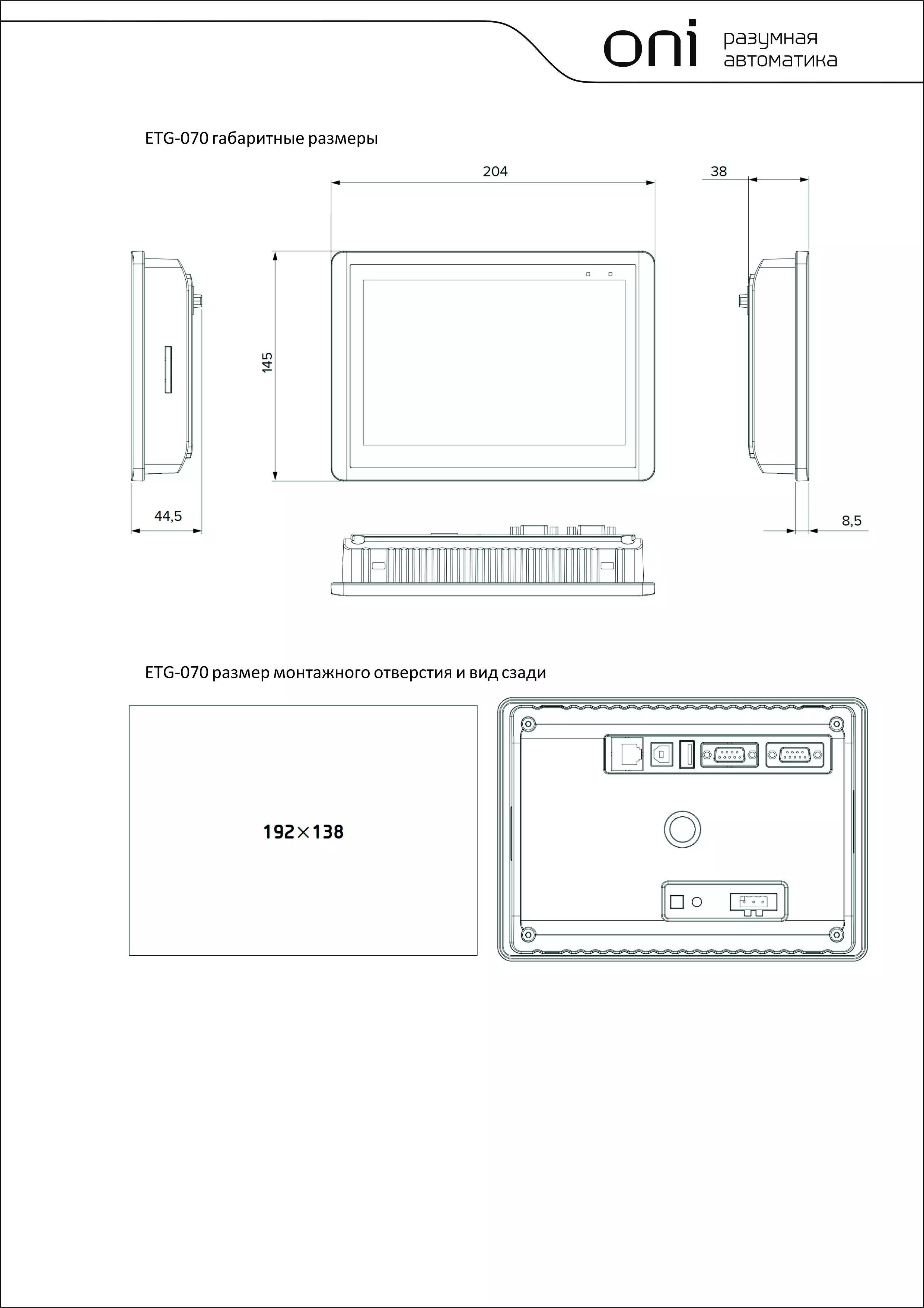 Панели оператора ONI ETG обладают высокой производительностью. Наличие различных коммуникационных интерфейсов позволяет легко интегрировать их в системы автоматизированного управления.