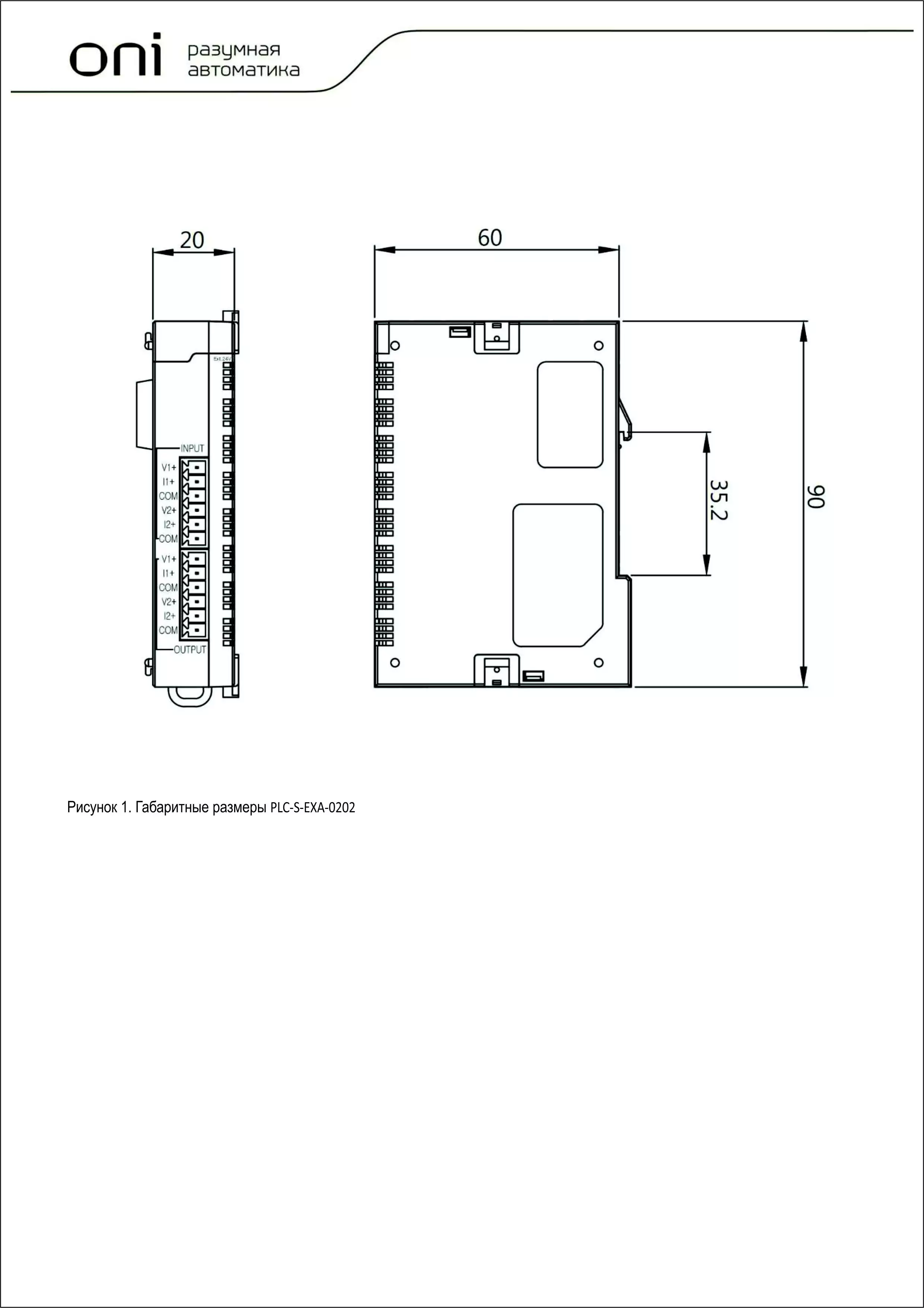 Модуль расширения аналоговыми входами/выходами серии ONI. 2 аналоговых входа / 2 аналоговых выхода (ток/напряжение). Предназначен для увеличения каналов аналогового ввода/вывода, используемых в программируемом логическом контроллере ONI ПЛК S