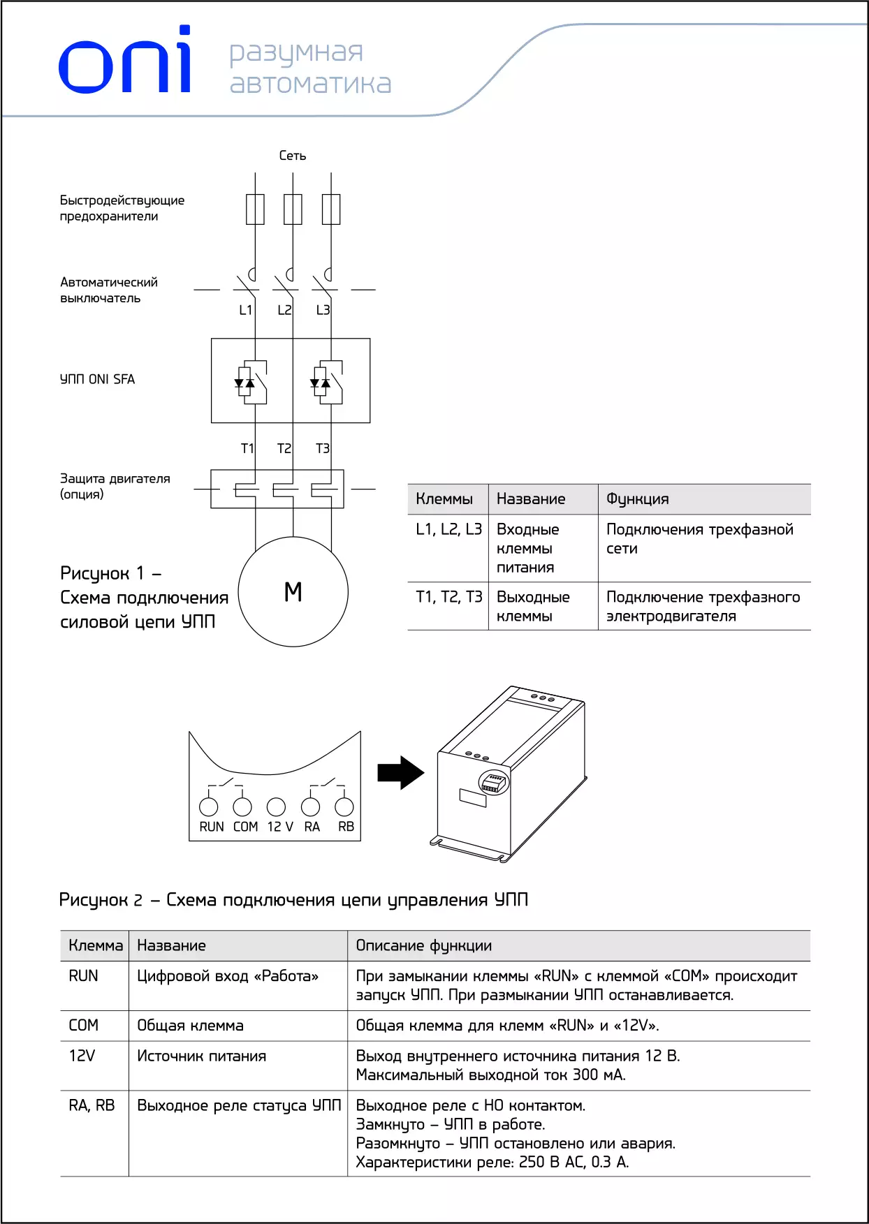 Устройство плавного пуска SFB 3Ф 380В 15кВт 30A Uупр 110-220В Modbus ONI ( SFB-33-15-A-10 )