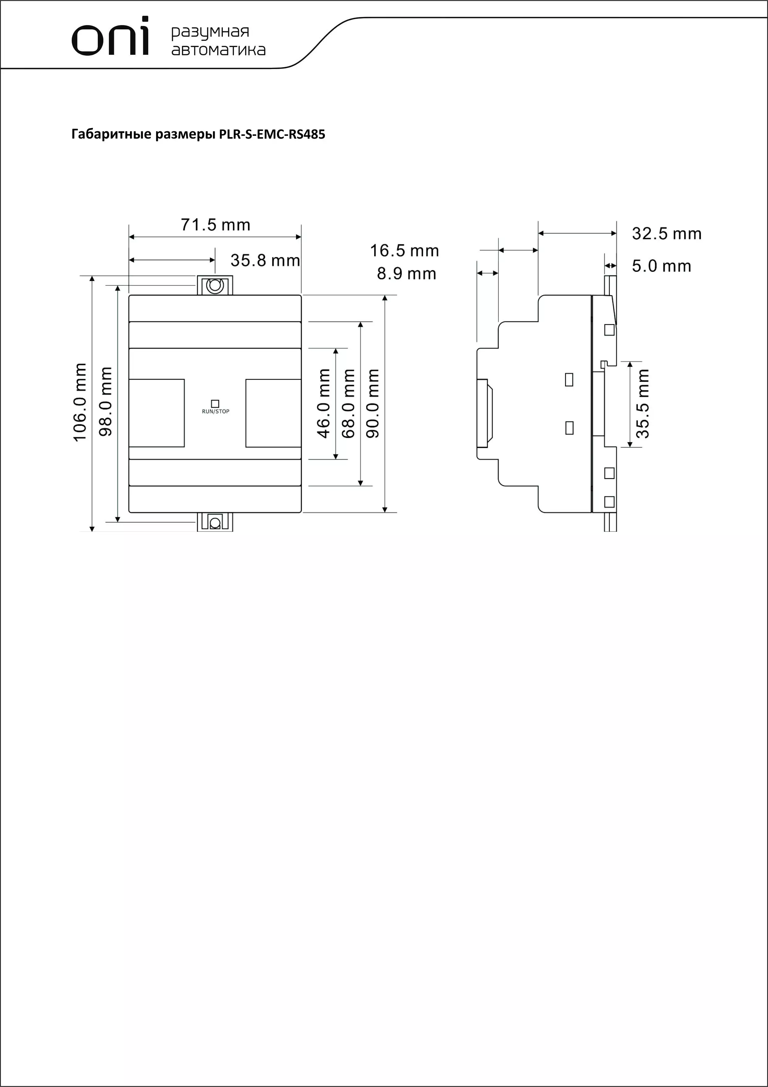 Коммуникационный модуль расширения RS485. Предназначен для увеличения каналов RS485 в программируемом логическом реле ONI PLR-S. Напряжение питания 12-24 В DC.